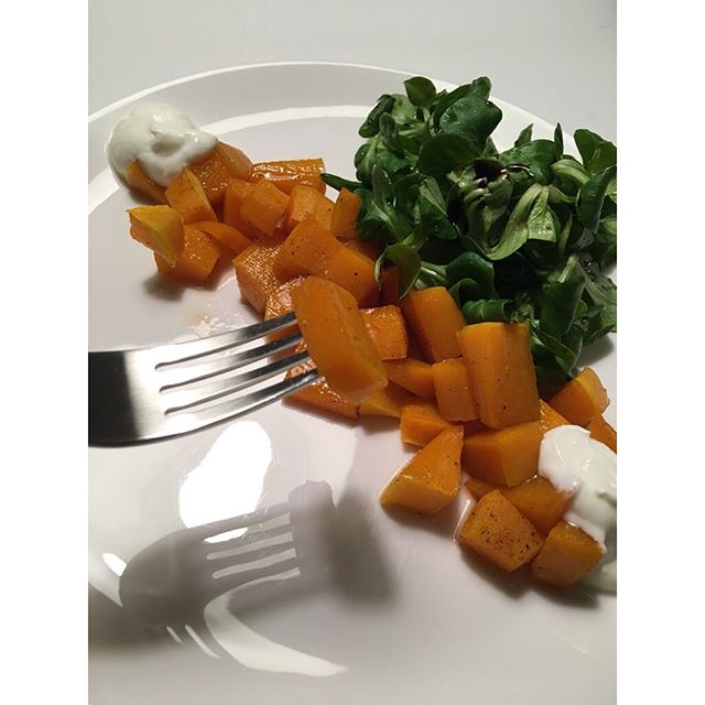 • Backkürbis-Salat mit Ahornsirup (köstlich!)